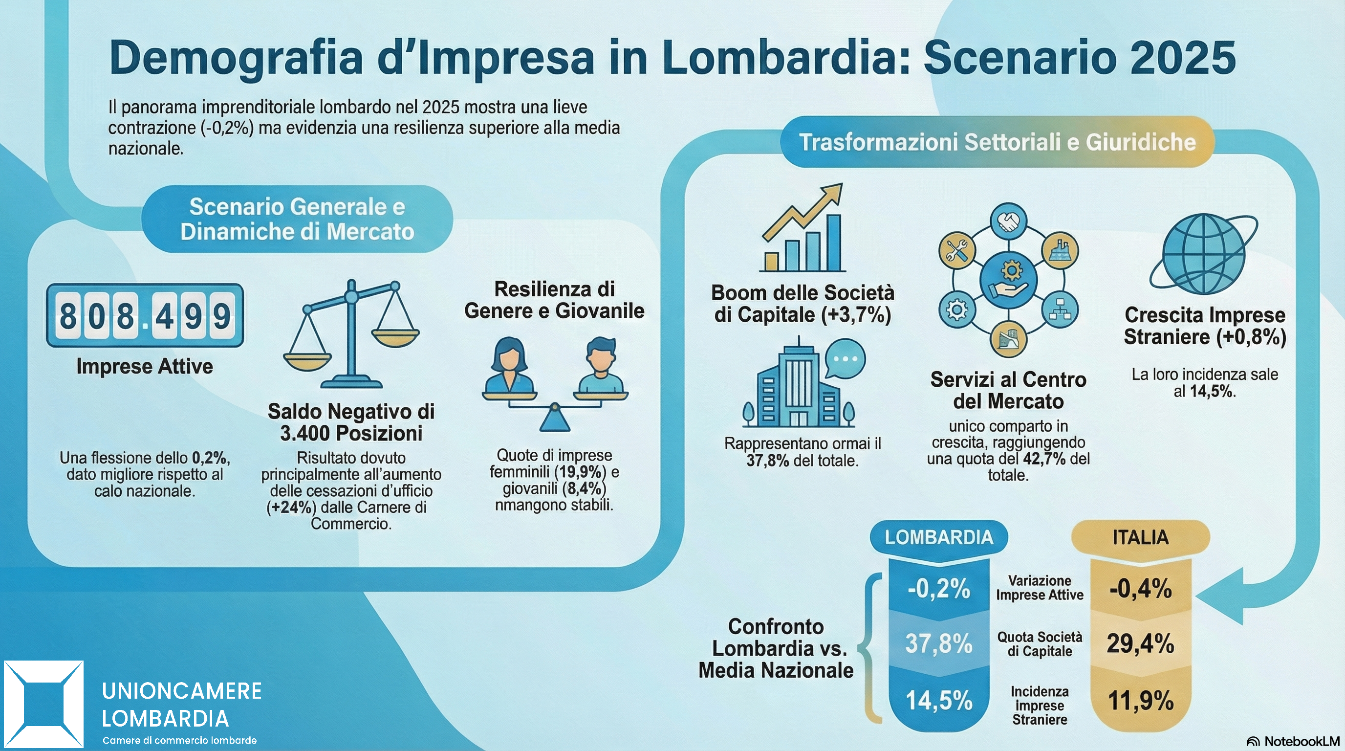 I rapporti sulla natimortalità delle imprese lombarde analizzano i dati relativi alla consistenza dello stock di imprese in Lombardia (registrate e attive) e ai flussi in ingresso e uscita (iscrizioni e cessazioni), secondo quanto emerge dalle fotografie scattate trimestralmente dal Registro Imprese delle Camere di Commercio.
